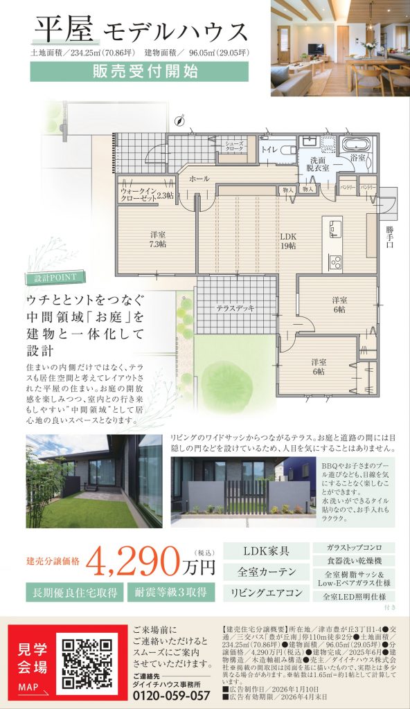 分譲価格 4,290万円(税込)にて 平屋モデルハウスの販売を開始いたしました。