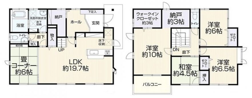 LDK22帖・和室8帖 ひろびろ余裕のある間取りと豊富な収納