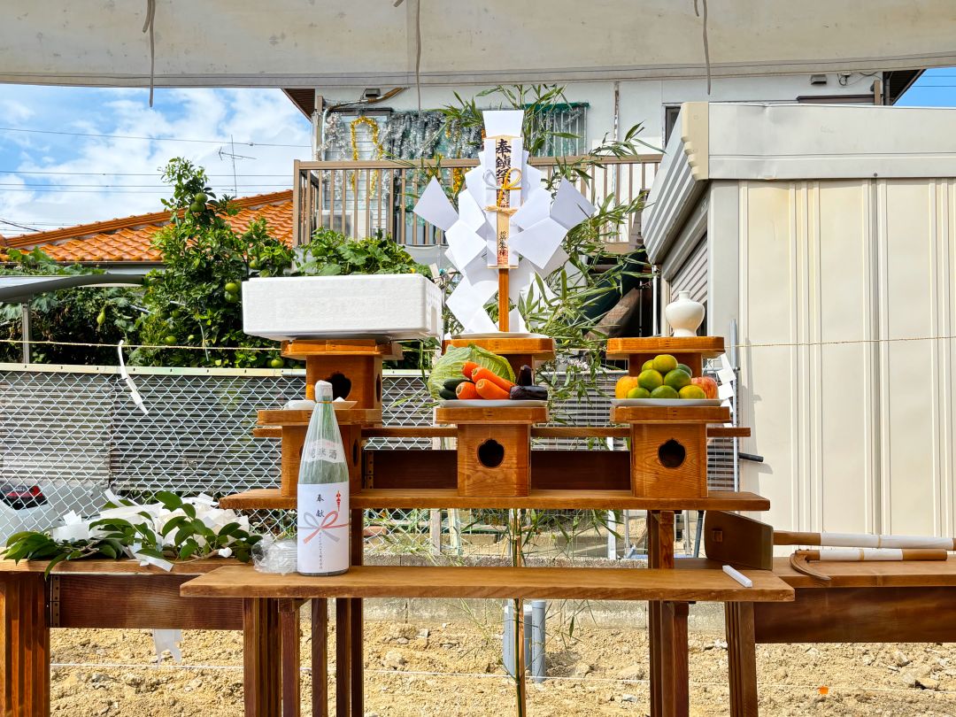 9月28日(日) お客様の建築用地で地鎮祭が執り行われました。 工事中の安全とお施主様の益々のご繁栄を祈願いたしました。 いよいよ、新築工事が始ま……